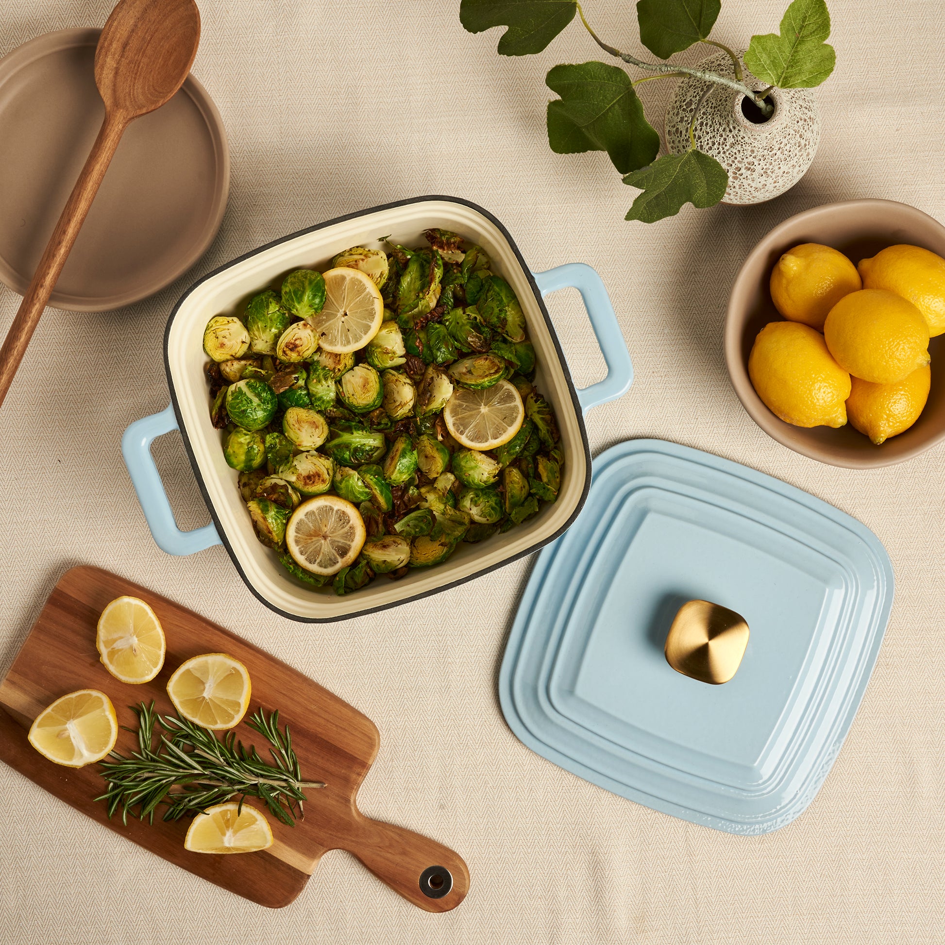 Now available in nine stunning colors, these square Dutch ovens also feature a gold-plated or silver-plated round knob for a sense of vibrancy and liveliness, making it an eye-catching piece in any kitchen. Perfect for casual or formal occasions, with a seamless oven-to-table transition, these Dutch ovens are a must-have for any home cook or baker!